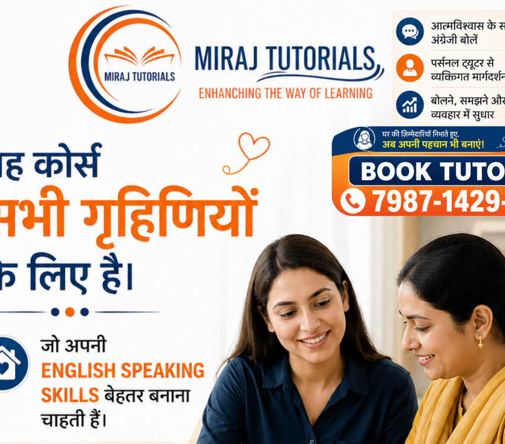 Miraj Tutorials provides expert home tutors for Maths, Science, English, and all subjects for Class 9th, 10th, 11th & 12th. Get personalized one-to-one learning with experienced and verified teachers at your home. We offer home tuition in Vijay Nagar, Adhartal, Gwarighat, Napier Town, Wright Town, Sadar, Madan Mahal, Kachnar City, and nearby areas of Jabalpur.…