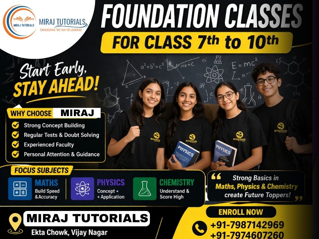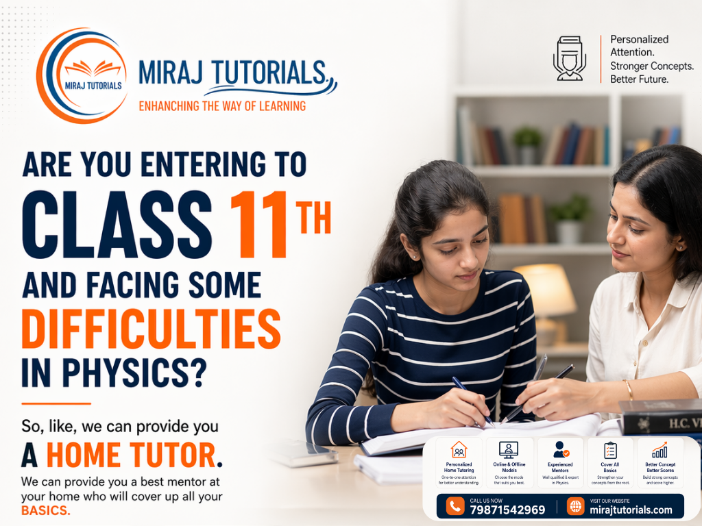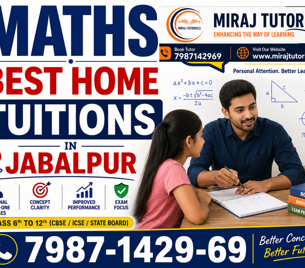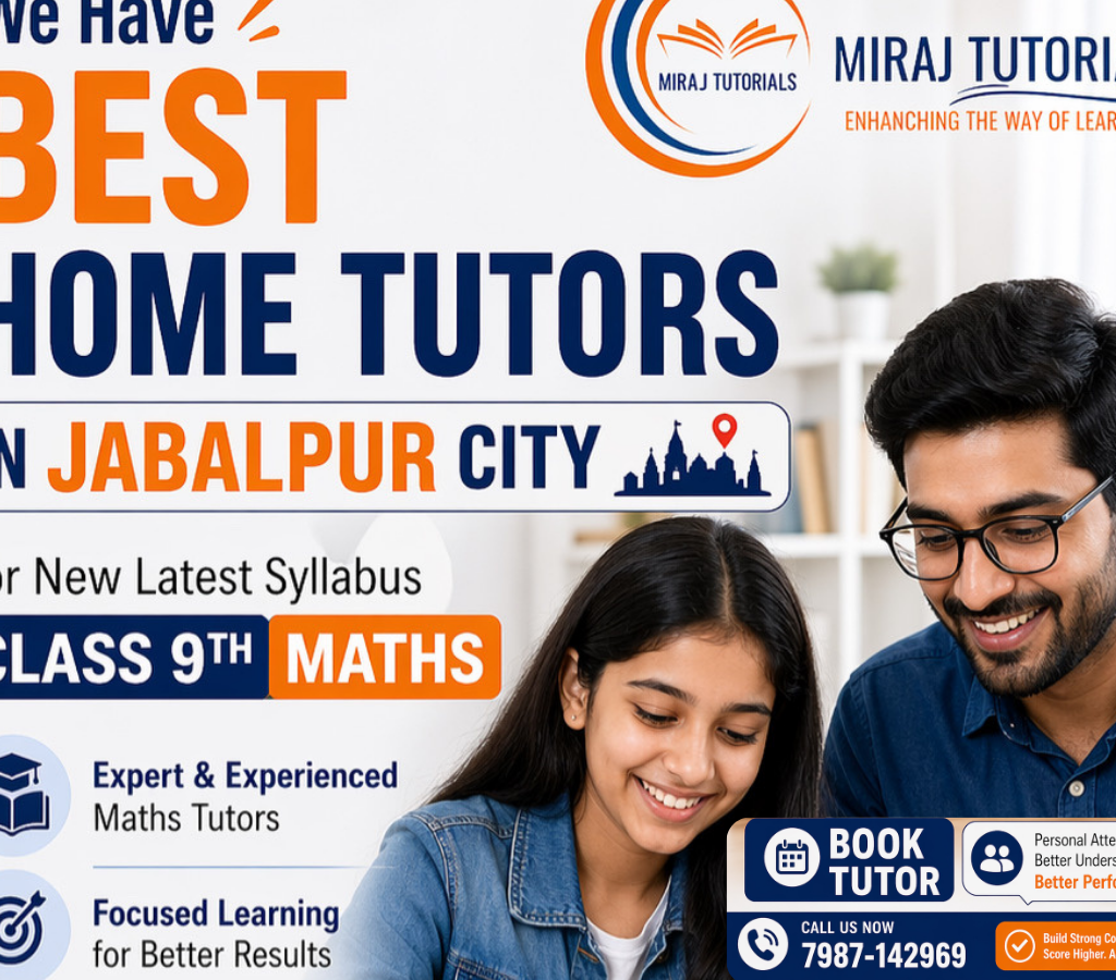 Miraj Tutorials offers expert home tutors for Maths, Science, and all subjects for Class 9th, 10th, 11th & 12th. Whether you need home tutors for Maths in Jabalpur, home tutors for Science in Jabalpur, or subject-specific guidance, we provide qualified and verified tutors at your doorstep. We serve major areas like Vijaynagar, Adhartal, Kachnar City,…