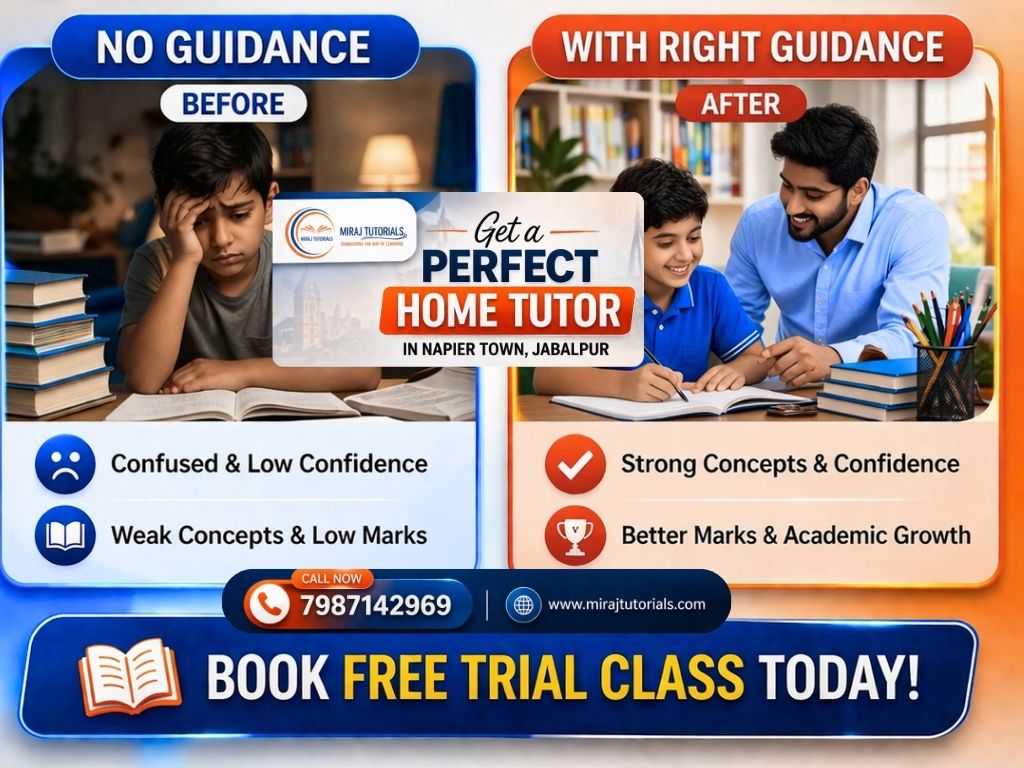 Read MoreHome tutors in Napier Town Jabalpur – Find the perfect tutor near you!Miraj Tutorials provides expert home tutors in Jabalpur for Classes 1st to 12th, covering all major subjects like Maths, Science, English, Social Studies, and Commerce. We specialize in personalized home tuition in Napier Town Jabalpur, designed to improve concept clarity, boost confidence, and…