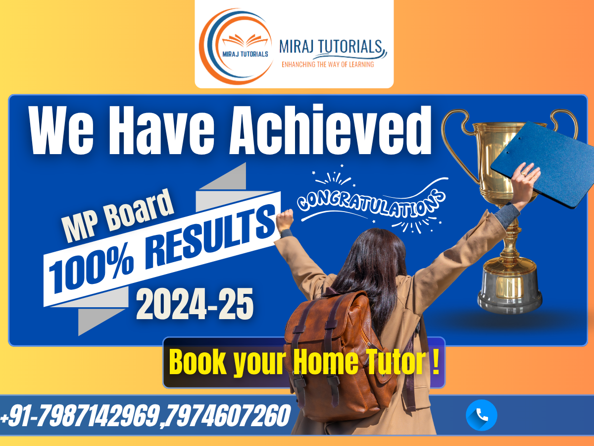 Read MoreMiraj Tutorials & Home Tutors in Jabalpur proudly announces a 100% result success this academic year! 🎉📚 With our expert guidance and personalized teaching approach, we have become a trusted name for best home tutors and tuition classes in Jabalpur. If you are searching for top home tutors in Jabalpur for Class 7th to 10th,…