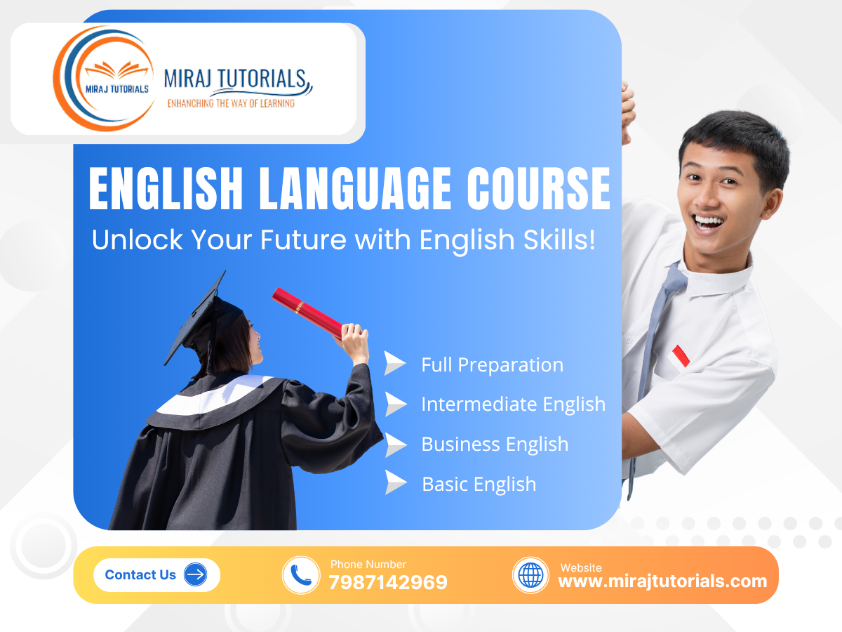 English is one of the most powerful tools of communication in today’s world. It is not just a language; it’s a key that unlocks countless opportunities in education, career, and personal growth. At Miraj Tutorials, we help you master English in the most effective and enjoyable way possible. Whether you struggle with grammar, lack confidence while speaking, or want to improve your writing skills, our expert tutors provide a structured and personalized learning experience for every student. We understand that every learner is different — some find it hard to speak fluently, while others hesitate in front of people. That’s why Miraj Tutorials focuses on both academic and practical English. We teach you grammar and vocabulary, but we also make you practice conversations, reading comprehension, and pronunciation regularly so that you can speak naturally and confidently. Our lessons are designed for school and college students, professionals preparing for interviews, and anyone who wishes to communicate effectively in English. With Miraj Tutorials, you don’t just learn English; you live it. Our teachers make sure that learning is never boring. Through interactive sessions, creative writing exercises, fun speaking activities, and personalized feedback, you will see yourself improving day by day. We aim to help you express your ideas clearly, write error-free English, and build a strong personality that reflects confidence and knowledge. So, if you’re ready to improve your English and transform your communication skills, join Miraj Tutorials today. Together, we will make English your strength — not your fear. Learn, speak, and shine with Miraj Tutorials, where education meets excellence and confidence meets opportunity.
