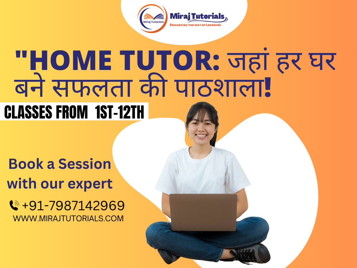 In today’s competitive academic environment, students often need more personalized attention than what is possible in a regular classroom. This is where home tuition plays a very important role in improving a student’s academic performance. Miraj Tutorials provides expert home tutors for Classes 1st to 12th, helping students learn effectively in the comfort of their own homes. With the right guidance and focused learning environment, students can easily understand difficult concepts, build strong fundamentals, and develop confidence in their studies. One of the biggest advantages of choosing home tuition is the individual attention a student receives from the tutor. At Miraj Tutorials, experienced tutors design their teaching methods according to the learning pace and academic needs of each student. Whether a student needs help with Mathematics, Physics, Chemistry, Biology, English, or other school subjects, our qualified tutors ensure that every concept is explained clearly. This personalized approach not only improves understanding but also helps students perform better in school exams and competitive tests. If you are searching for the best home tutors for Classes 1st to 12th, Miraj Tutorials is the perfect platform to connect with expert educators who truly care about a student’s progress. With personalized teaching, flexible timing, and a focus on strong conceptual learning, Miraj Tutorials continues to help students achieve better results and build a brighter academic future. Book a session today with Miraj Tutorials and experience the power of personalized learning where your home becomes your child’s success school.