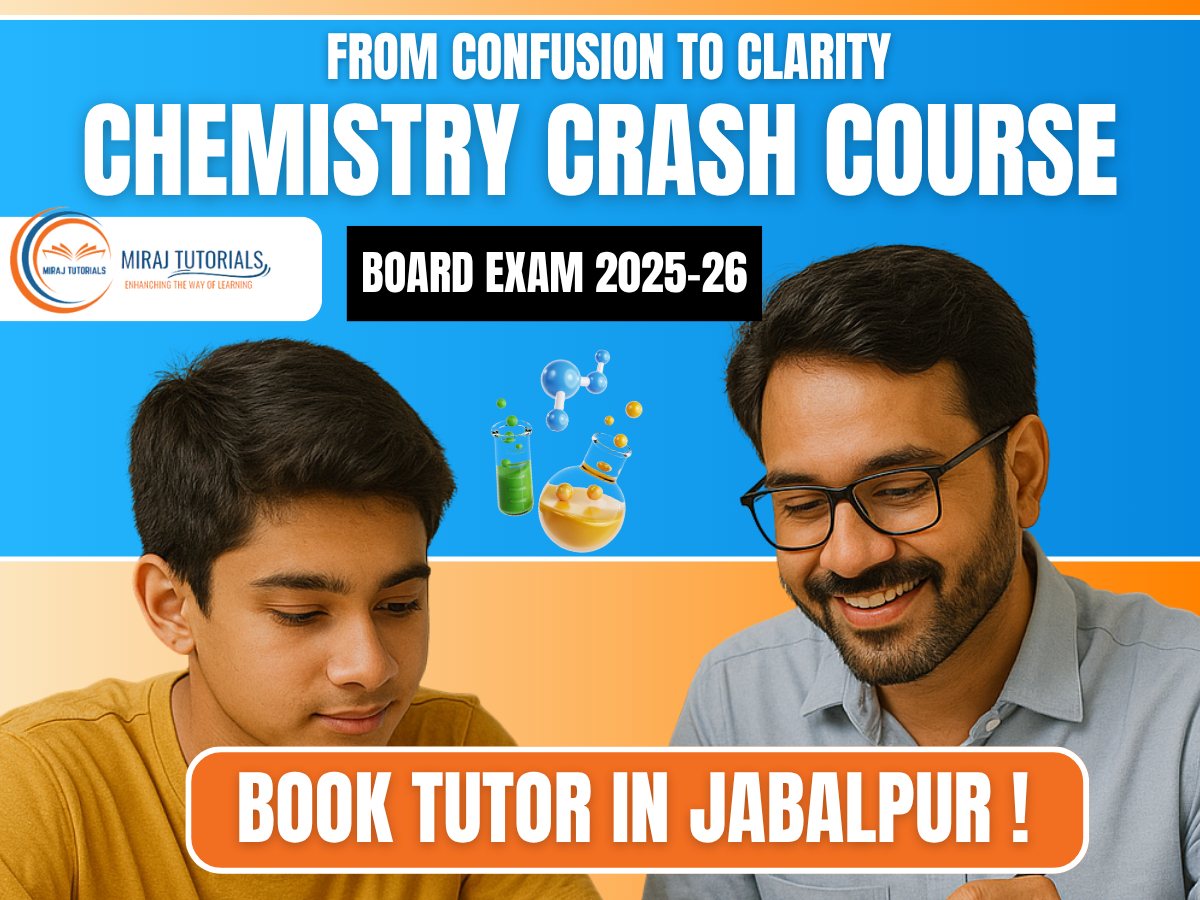 Are you finding Chemistry difficult and struggling to remember reactions, equations, and formulas? Don’t worry because Miraj Tutorials, one of the best home tuition providers in Jabalpur, is here with an exclusive Chemistry Crash Course for Class 9th, 10th, 11th, and 12th students. Our crash course is specially designed to help students revise the entire syllabus in a short time and gain a deep conceptual understanding. Whether you are preparing for CBSE board exams, IIT-JEE, or NEET, our expert Chemistry tutors in Jabalpur provide complete guidance and personal attention to help you score your best. At Miraj Tutorials, our teaching method focuses on clarity, concept-building, and smart problem-solving techniques. The Chemistry Crash Course covers Physical, Organic, and Inorganic Chemistry in a simple and interactive way. Students are provided with chapter-wise notes, formula sheets, practice questions, and previous year question analysis to ensure thorough preparation. Our tutors also guide students on how to approach numerical problems, balance equations, and understand reaction mechanisms effectively. Miraj Tutorials offers both online and offline learning options with small batch sizes and one-to-one home tuition facilities. Our home tutors in Jabalpur are highly qualified and experienced, making complex concepts easy and interesting. We aim to make Chemistry not just a subject but a scoring area for every student. Students can join our crash course to revise the complete syllabus, strengthen fundamentals, and build exam confidence. If you are looking for expert Chemistry home tutors in Jabalpur, Miraj Tutorials is your perfect choice. Join our Chemistry Crash Course today and experience top-quality teaching, result-oriented preparation, and personal mentorship. To enroll or know more, contact us