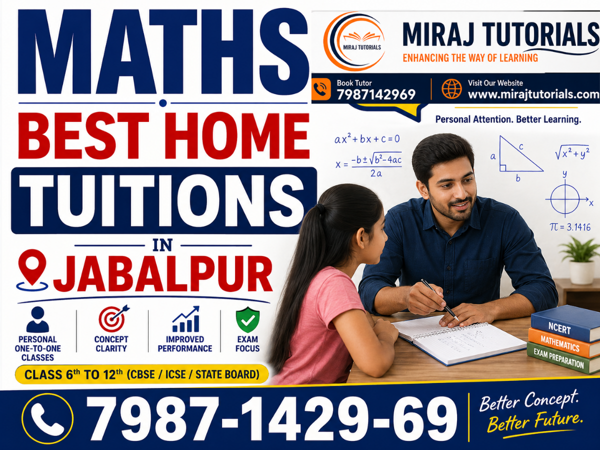 Looking for the best home tutors in Jabalpur? Miraj Tutorials offers expert home tuition services in Jabalpur for students of Class 9th, 10th, 11th & 12th across all major subjects.