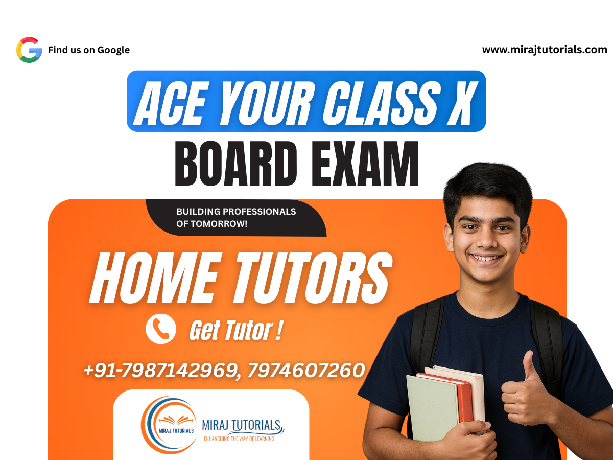 Read MoreAce your Class 10th Board Exam with Miraj Tutorials, Jabalpur’s most trusted home tuition service offering personalised 1-on-1 learning for Maths, Science, English, Hindi, and Social Science. With expert tutors who follow the latest CBSE pattern, Miraj Tutorials focuses on complete NCERT explanation, previous year questions, case-based questions, competency-based questions, diagrams, formulas, and exam-oriented strategies…