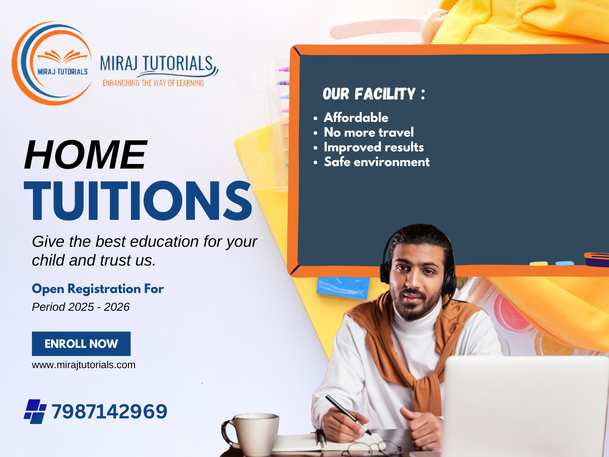 At Miraj Tutorials, we believe every student can achieve excellence with the right guidance. From clearing basic doubts to achieving top results, our expert home tutors support students at every step of their academic journey. We focus on concept clarity, regular practice, and personalised attention so that learning becomes stress-free and effective. Our home tuition…